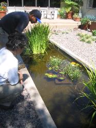 the pond. Already there are water striders