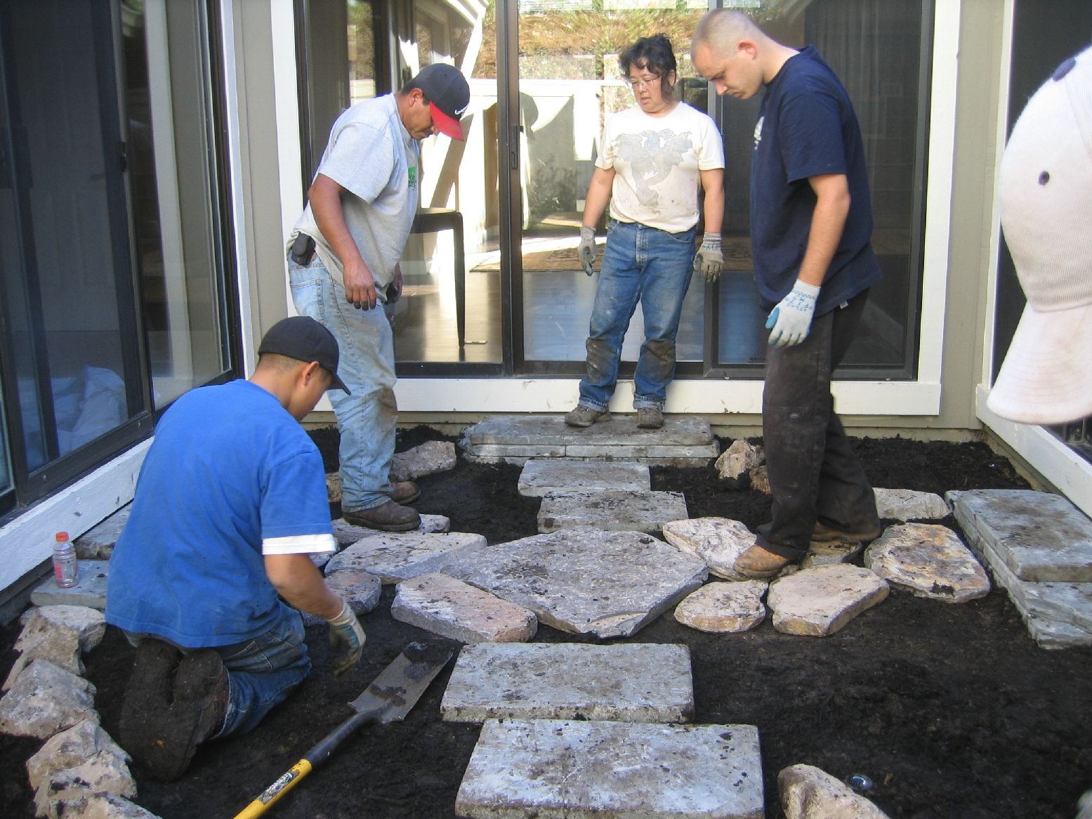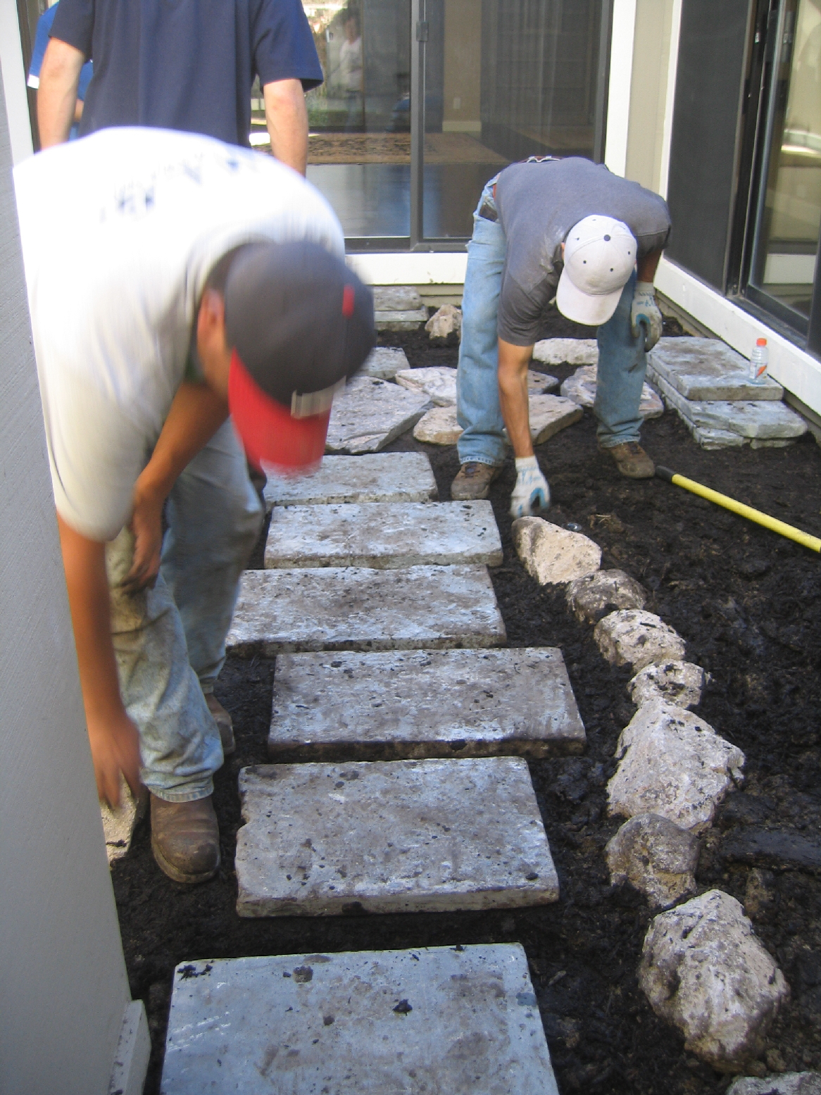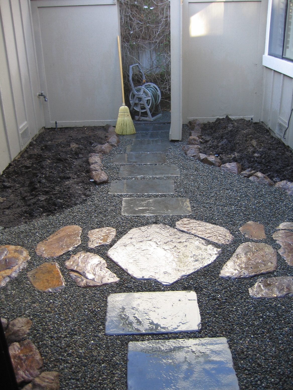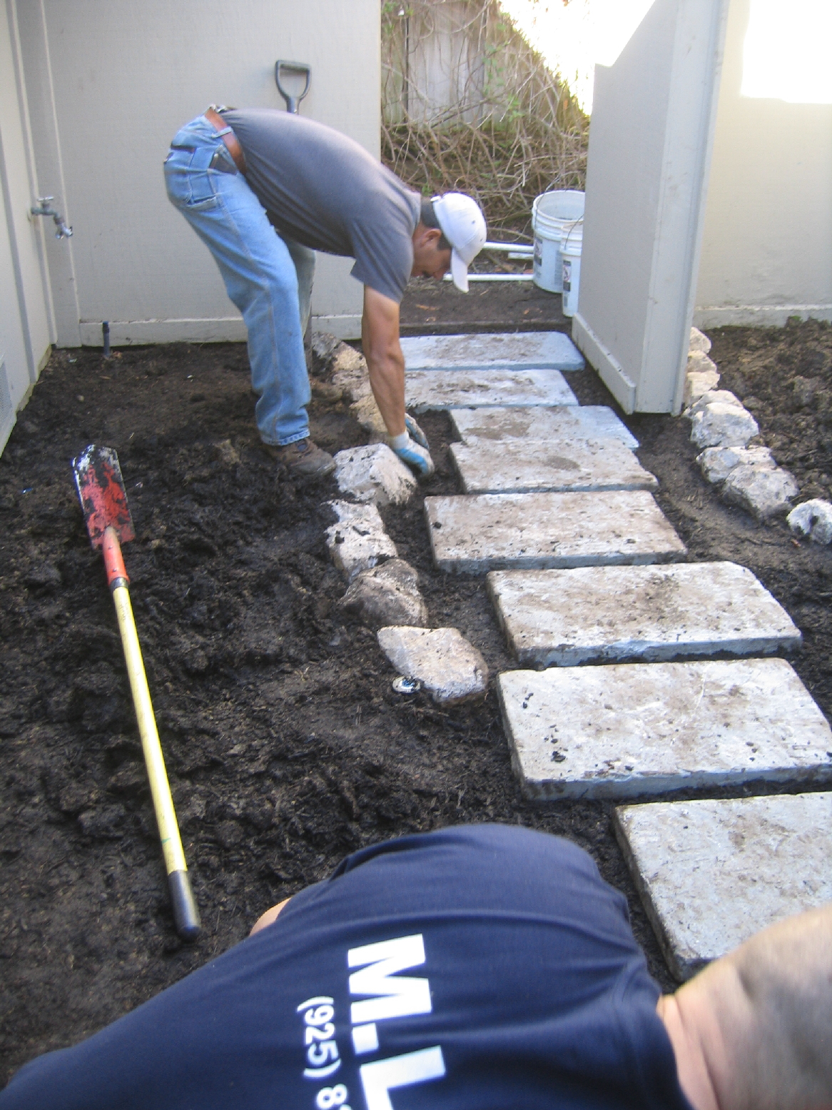 Finishing rock edging & stepping stones.